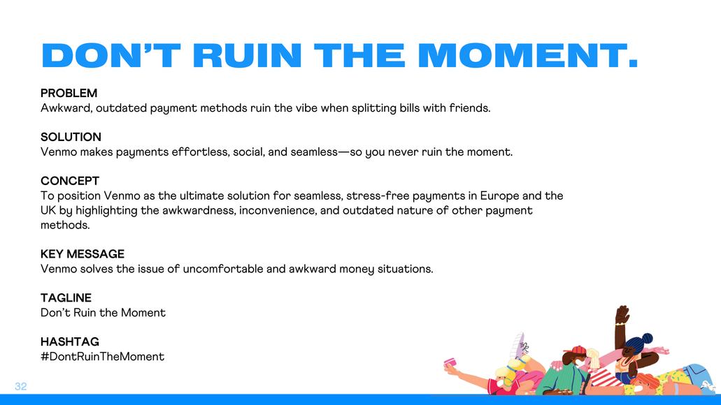 With the five-week “Don’t Ruin the Moment” launch campaign, Venmo is establishing itself as the go-to payment solution in Europe and the UK, eliminating the stress of outdated payment methods and positioning itself as the effortless way to pay.